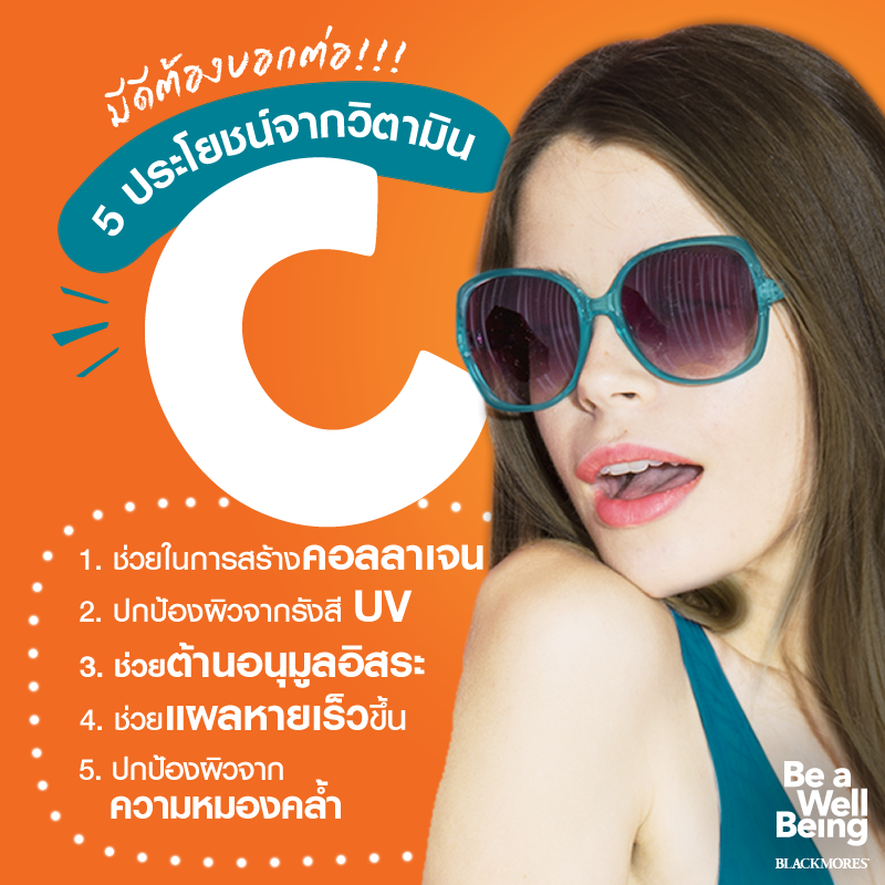 - วิตามิน ซี ช่วยในการต่อต้านอนุมูลอิสระ สร้างเนื้อเยื่อคอลลาเจนและช่วยให้หลอดเลือดแข็งแรง